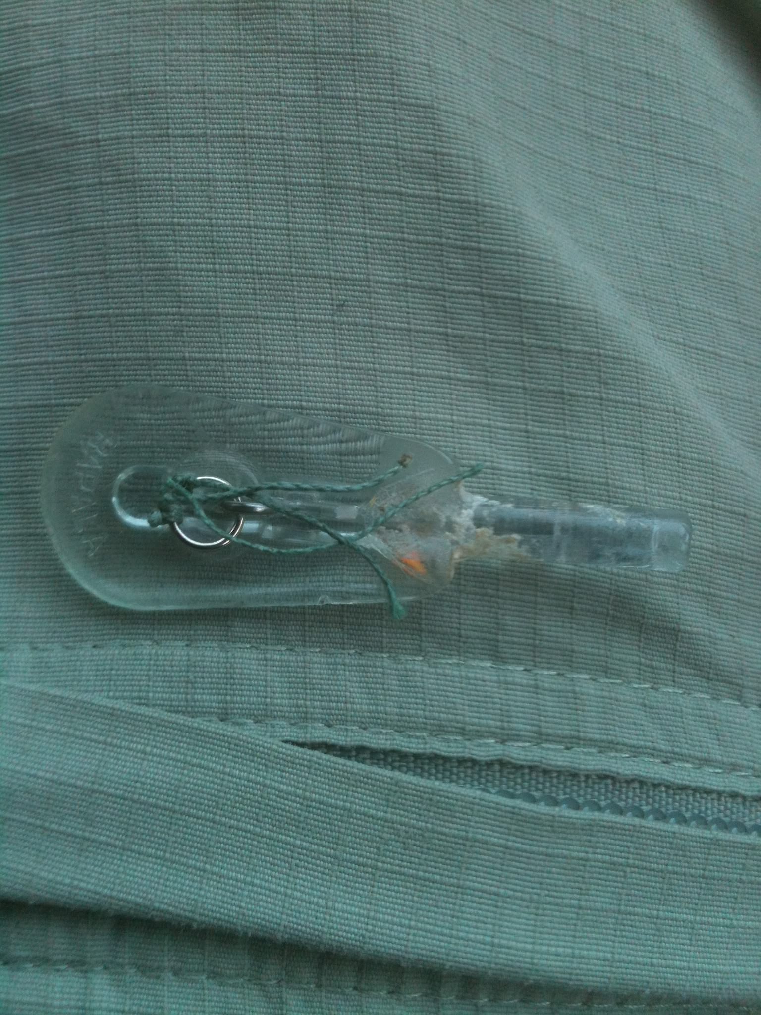 After the line went slack, the lip of my crankbait floated up. The fish was so powerful that it had separated the body of the lure from the lip (which was inserted into the body by a plastic rod, as you can see in the photo). After repeated use, and possibly cracked from hitting the rip rap, the lure simply failed.